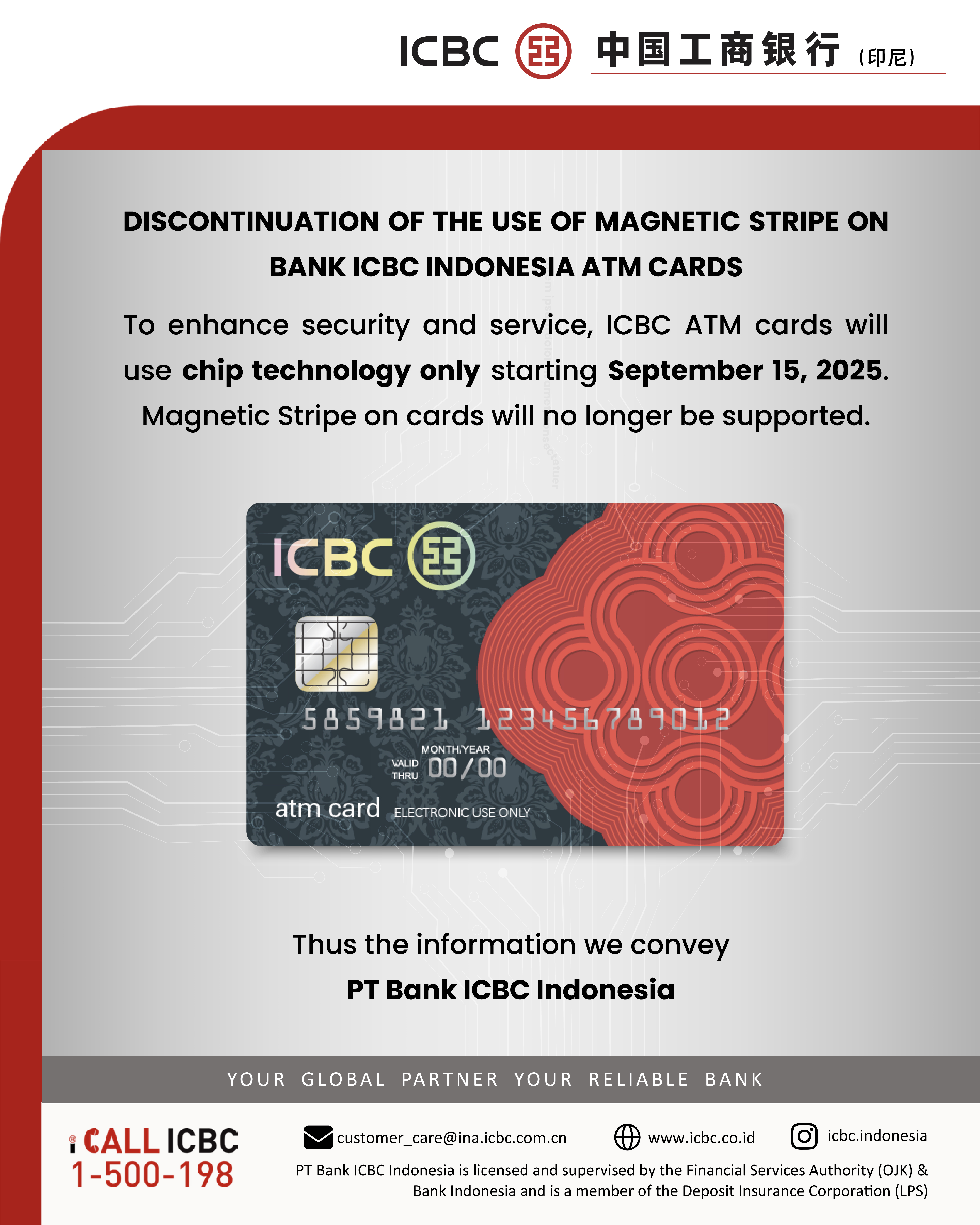 Discontinuation of The Use of Magnetic Stripe on Bank ICBC Indonesia ATM Cards